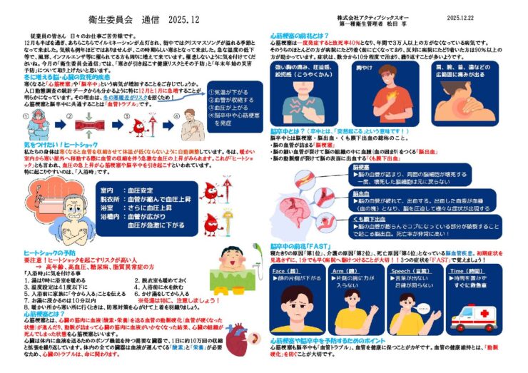 top > > 衛生委員会通信 2025.12 寒さが引き起こす健康リスクとその予防・年末年始の災害予防